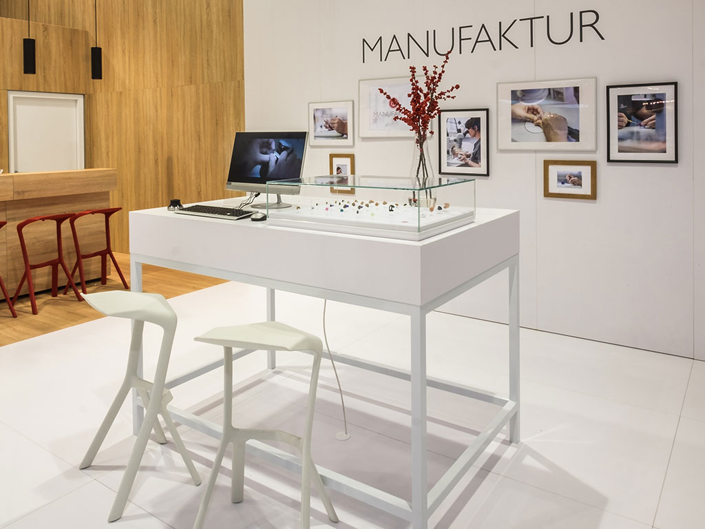 Ein besonderes Highlight ist die Präsentation der „Bernafon Manufaktur“. Hier fertigen Spezialisten seit über 35 Jahren maßgeschneiderte Im-Ohr-Geräte und Otoplastiken in präziser Handarbeit – ein Alleinstellungsmerkmal im Wettbewerb. Die hochwertigen Produkte werden in eleganten Vitrinen und an individuell gestalteten Beratungstischen präsentiert und schaffen den perfekten Rahmen für intensive Fachgespräche.