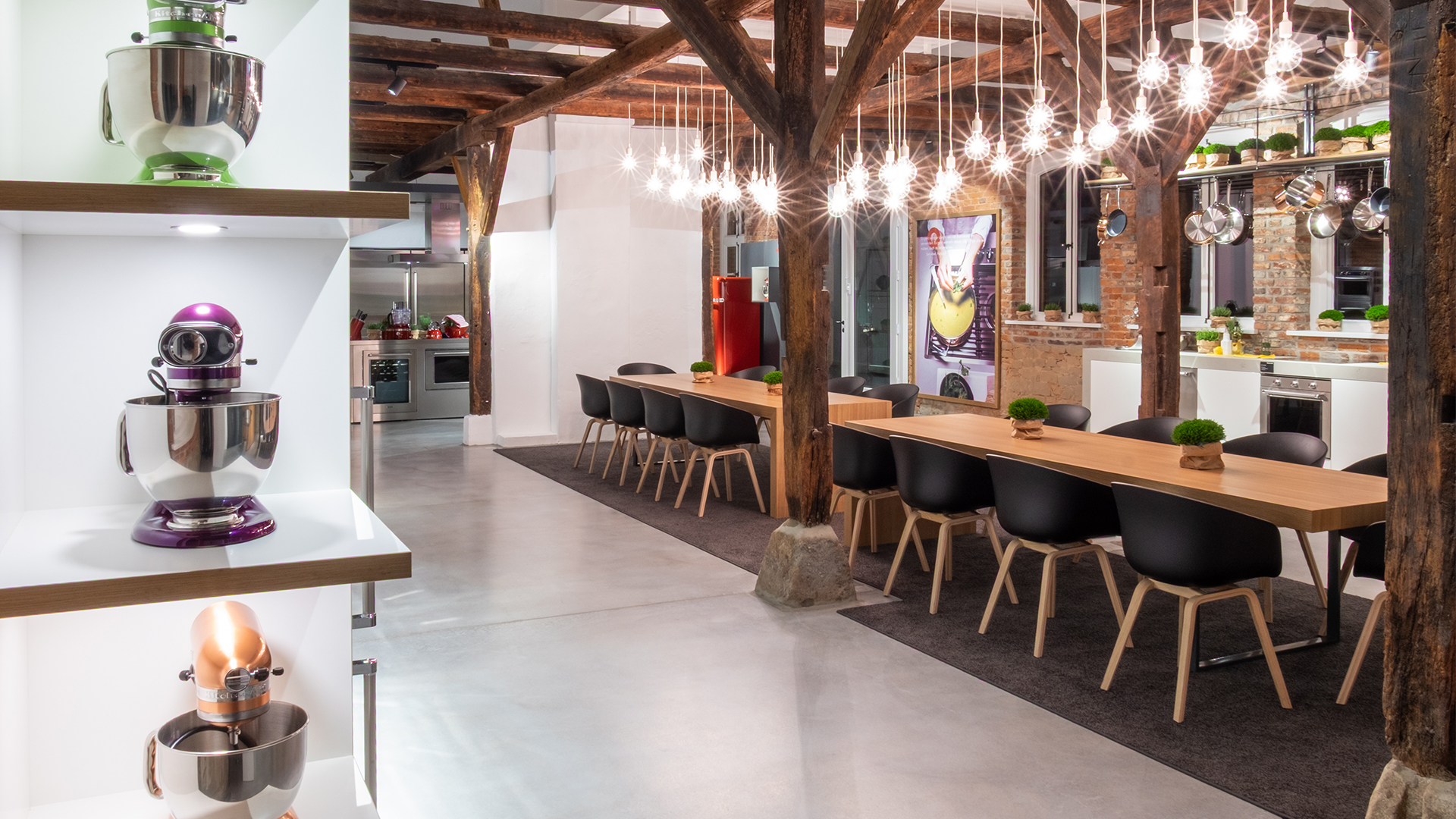 KitchenAid Showroom – Traditionelles Gut, modernes Design – KitchenAid in Szene gesetztGut Böckel / 300 m² / Interiordesign