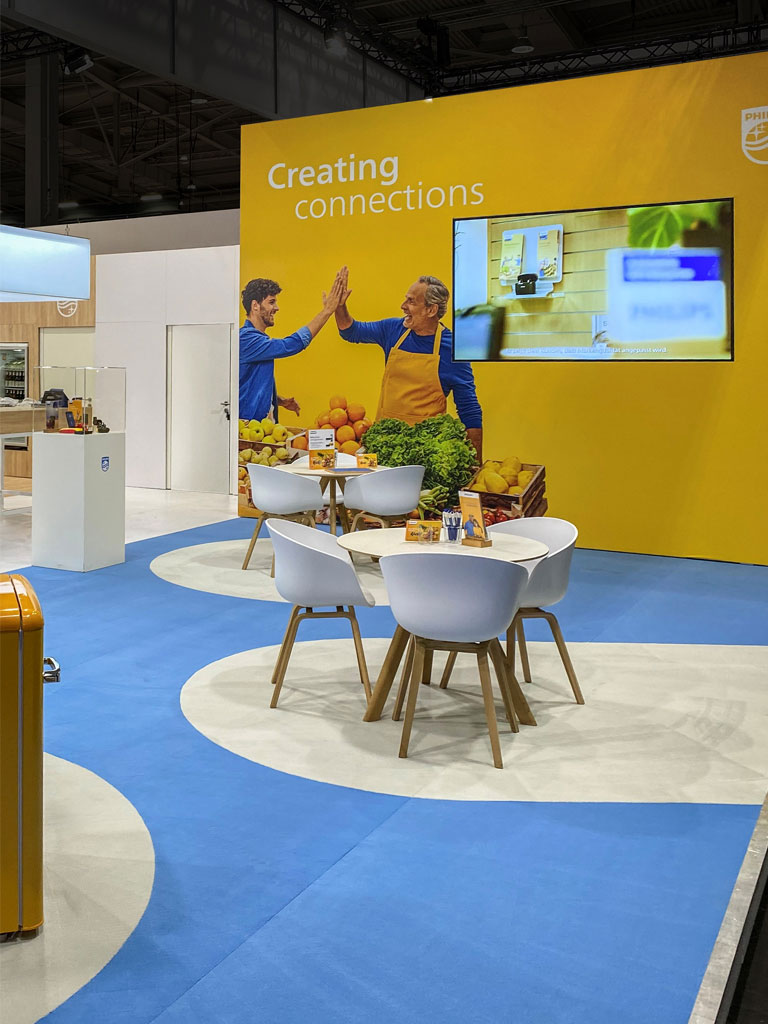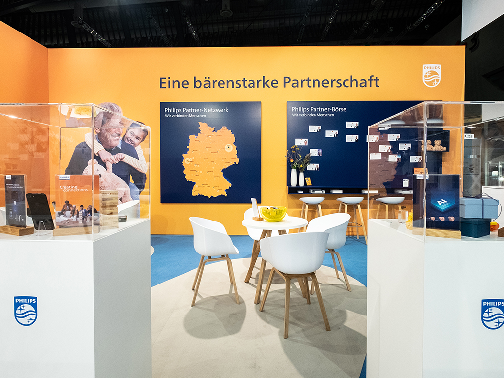 Für einen reibungslosen Ablauf während der Messe haben wir alle Gewerke präzise koordiniert und eng mit der Werbeagentur von Philips zusammengearbeitet. Dies sichert sowohl die Qualität des Auftritts als auch eine konsistente Markenpräsentation.