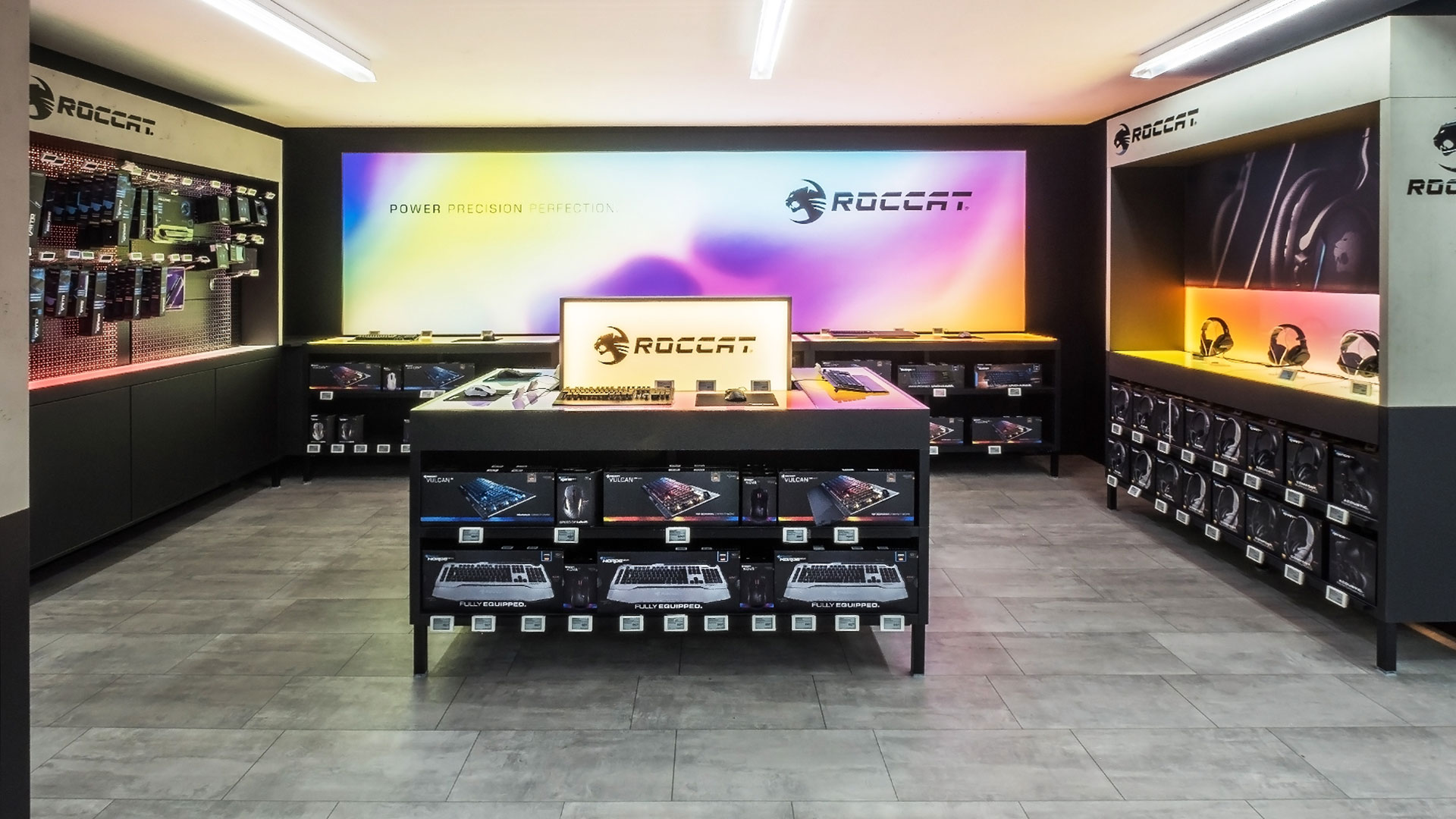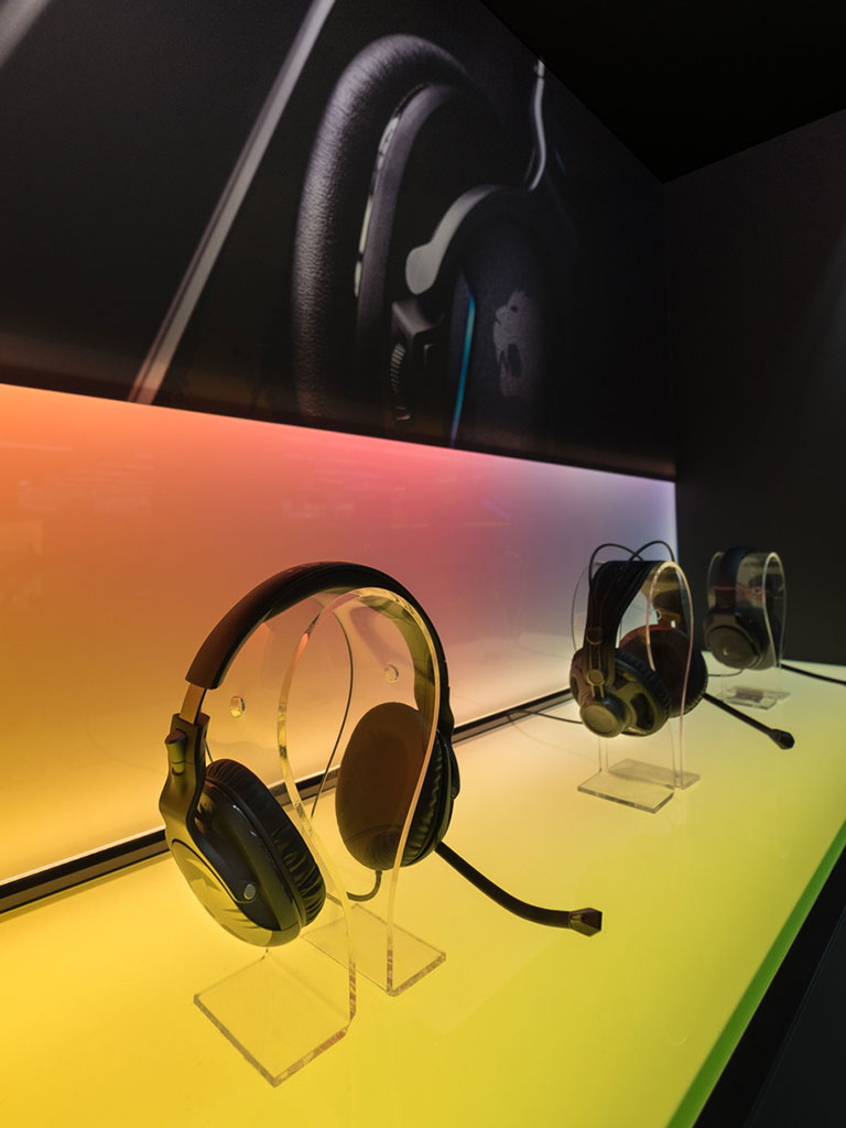 Die Kombination aus hochwertigen Materialien, durchdachter Lichtführung und starken Farbkontrasten schafft ein einzigartiges Markenerlebnis, das Innovation und Markenidentität sichtbar verbindet – modern, expressiv und unverwechselbar ROCCAT.